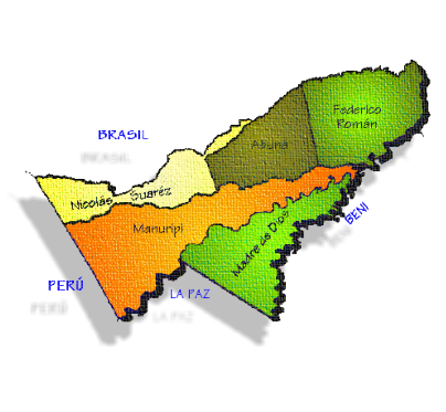 El Departamento de Pando fue creado por Ley de 24 de septiembre de 1938, se halla situado en el Noreste de la Republica , limita al Norte y al Este, con la Republica del Brasil; al Sur con La Paz y el Beni; al Oeste con la Republica del Perú, tiene una superficie territorial de 63.827 km2, esta ubicado a 202 metros sobre el nivel del mar; Estas tierras que fueron conocidas como Territorio Nacional de Colonias, fue creado durante la presidencia del Teniente Coronel Germán Buch.El Departamento de Pando lleva el nombre del General José Manuel Pando defensor en la guerra del Acre, esta surcado por caudalosos ríos pertenecientes a la cuenca del Amazonas, que son colectados por el rió Madera. El territorio esta cubierto por una vegetación exuberante de bosque tropical, propio del clima cálido de la regiónLa Capital de Pando es Cobija, llamada así en honor al puerto perdido en el Litoral Boliviano, fue fundada con el nombre de Bahía, en 9 de febrero de 1906. esta situado a 300 metros sobré el nivel del mar, y cerca al rió Acre. Rodeada de exuberante vegetación en un marco de un bello paisaje es la ciudad mas atractiva del Noroeste Boliviano, llamada también La Perla del Acre.Pando es un territorio rico en goma, almendra, castaña es considerada una inmensa reserva de la flora y fauna. PANDINITADavid Torrico (Taquirari)Pandinita hermosa tú eres mi único quererPor eso no te puedo olvidar;Pandinita hermosa tú eres mi único quererPor eso no te puedo olvidar,Muchachita de amor forestal.Es mi tierra un paisaje de bello colorTiene inmensas selvas donde ruge el jaguarTiene sus palmeras de belleza tropicalQuerida tierra sin par.Es mi tierra un paisaje de bello colorTiene inmensas selvas donde ruge el jaguarTiene sus palmeras de belleza tropical¡Querido Pando mi amor!Morena, mi amor,Bañada de sol,Por eso yo te canto¡Ay pandinita de mi corazón!Brindo esta canciónA mi suelo natalY con mucha alegríaAyúdame a gritar: ¡Viva Pando!Cualquier copia del material en su totalidad o de manera parcial esta permitida, siempre y cuando se haga mención a la fuente.Alfredo Solíz Béjar Director y ConductorPentagrama del Recuerdo.com