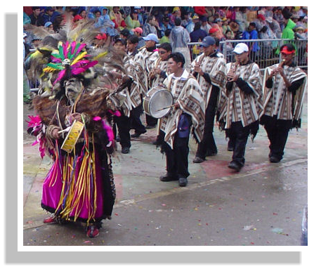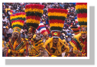 En la diversidad de la geografía, en la que se encuentra la llanura chaqueña, y una extensa selva del oriente boliviano, se asentaron sobre las riberas de los ríos diversas tribus como los Guaycurú, los Mocovíes, Pilagas, Caduveo, Abipones y los Tobas. Durante la época del Imperio Incaico, El Inca Yupanqui, como una prueba de su incursión en el Oriente o trópico Boliviano, lleva al Tawantinsuyu, grupos de chunchos denominados a si por su forma de vestir y su baile, eran mas dedicados a la caza y la pesca, tenían sus propias danzas. Se sabe que los incas establecieron contacto con los selvicolas, mucho antes de la llegada de los Españoles, cuando en el incario se celebraba las ceremonias especiales estos grupos participaban y se les conocía como chunchos. La danza de tobas, representa la caza de animales, y su apronte guerrero, donde impresionan los movimientos elásticos de sus danzarines junto a la maravillosa agilidad corporal. Su música es monótona su danzar variado, bailan con agilidad y maestría formando diferentes figuras coreográficas, que realizan sin perder el ritmo y la sincronización, con el llamado paso doble dan saltos triples, apenas un cambio de compás en la música, indica la transición de un baile a otro. Usan "chontas” palos listados como lanzas que manejan con enorme destreza, sus saltos y vueltas son tan elevados que junto a la velocidad con la que realizan causan admiración.SU MUSICA es una melodía de dos partes, hasta la década del 50` estos conjuntos bailaban al son de un grupo de quenistas acompañados de bombo y tambor. Encabeza la tropa el jefe de la tribu que con la ayuda de un pito conduce a la tropa a la escenificación de una cacería o de un acto guerrero, preceden al conjunto cazadores que llevan monos, pumas y loritos del oriente boliviano.SU VESTIMENTA Es muy liviana, originalmente comprendía de un calzoncillo, una polera de manga larga, un faldellín, una hombrera, con bordados, espejos y piedras de colores, lleva la cara pintada, en la cabeza un penacho con plumas de varios colores, al igual que en las muñeca y en los tobillos, calza unos mocasines hechos de cuero de venado, CONJUNTOS Uno de los primeros grupos de estas características, surge en el carnaval Orureño con el “Conjunto Folklórico de Tobas Zona Sud”, fundado el 14 de enero de 1917. Le seguía el “Conjunto de Tobas zona Central”, que lamentablemente ya no existe. Junto al primero nombrado mencionemos al “Conjunto Artístico Tobas Uru Uru”.Cualquier copia del material en su totalidad o de manera parcial esta permitida, siempre y cuando se haga mención a la fuente.Alfredo Solíz Béjar Director y ConductorPentagrama del Recuerdo.com